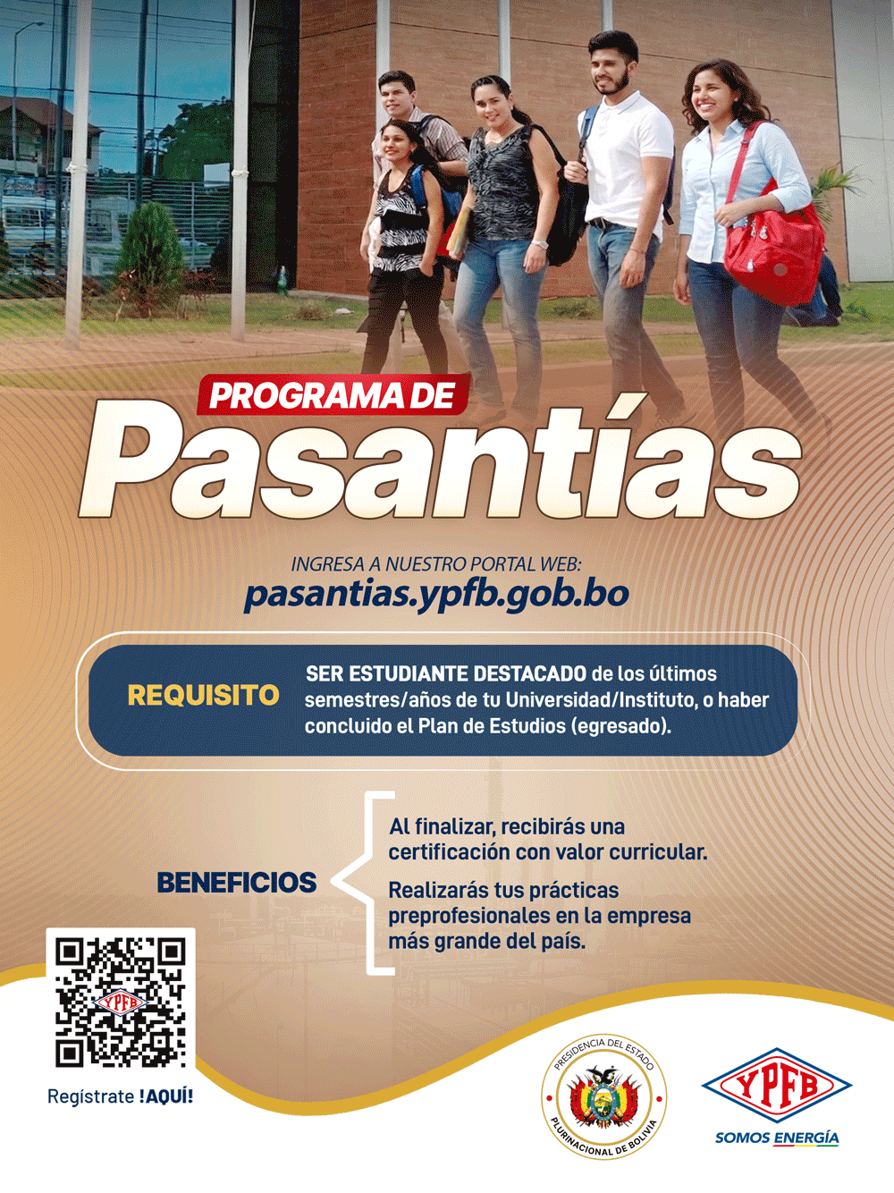 - Regístrate solo en la web oficial: https://pasantias.ypfb.gob.bo;